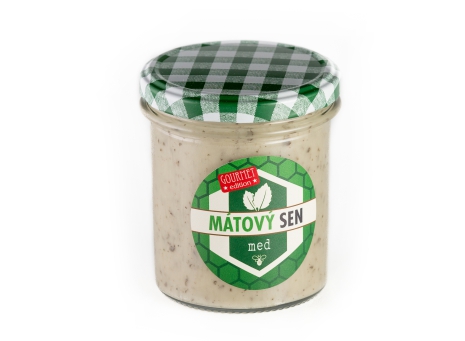 Jistě už mnoho z nás vyzkoušelo lahodnost mátového čaje, příjemně oslazeného medem. Jeho chuť nás přenese kamkoliv si budeme přát, třeba do říše pohádek Tisíce a jedné noci. Med Mátový sen je dokonalou směsí mátového extraktu, sušených lístků a pastového medu. Jen pouhá lžička vám umožní spatřit Aladinovu kouzelnou lampu nebo létající koberec. Má to ovšem jednu podmínku - při ochutnávání musíte umět snít.